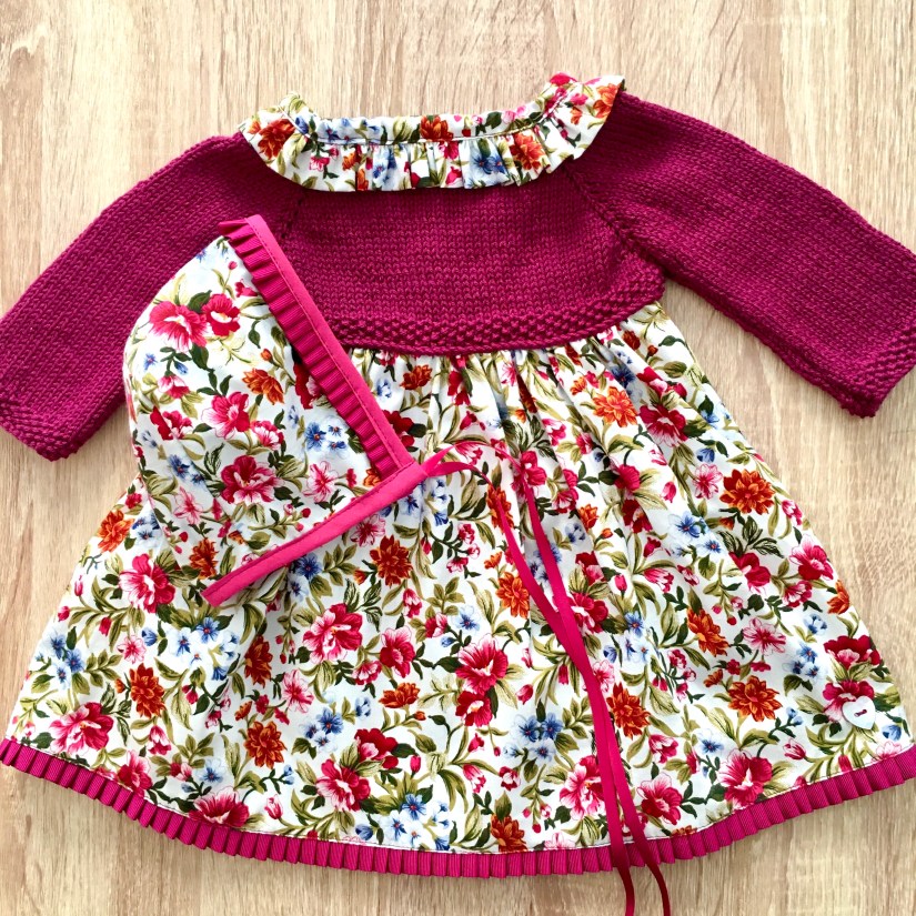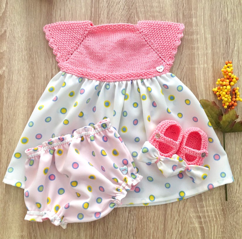 Pensados para las princesitas de la casa, los vestidos combinados están compuestos por canesú tejido a mano y falda de tela.
